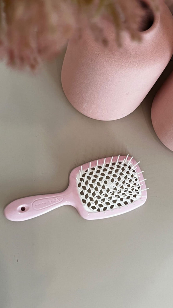Superbrush gently and effectively detangles thanks to its soft tips and its particular patented beehive perforation allows for very quick drying. Also perfect in the shower or with damp hair, to apply the cream and detangle in just a few steps. Very useful for delicate baby hair and on extensions: its soft tips detangle in a super delicate way! The pneumatic base of the brush has a particular patented beehive perforation. The hot air of the hairdryer is thus distributed evenly to dry in a few steps without stressing the hair.