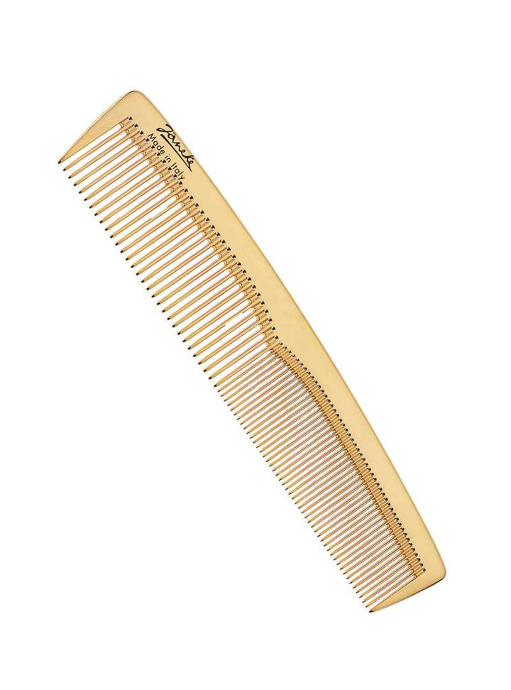 Janeke Double Ridge Toilette comb– elegantly crafted with a 24K gold-plated finish and a rounded shape to gently glide through the hair without causing damage to the scalp or strands.