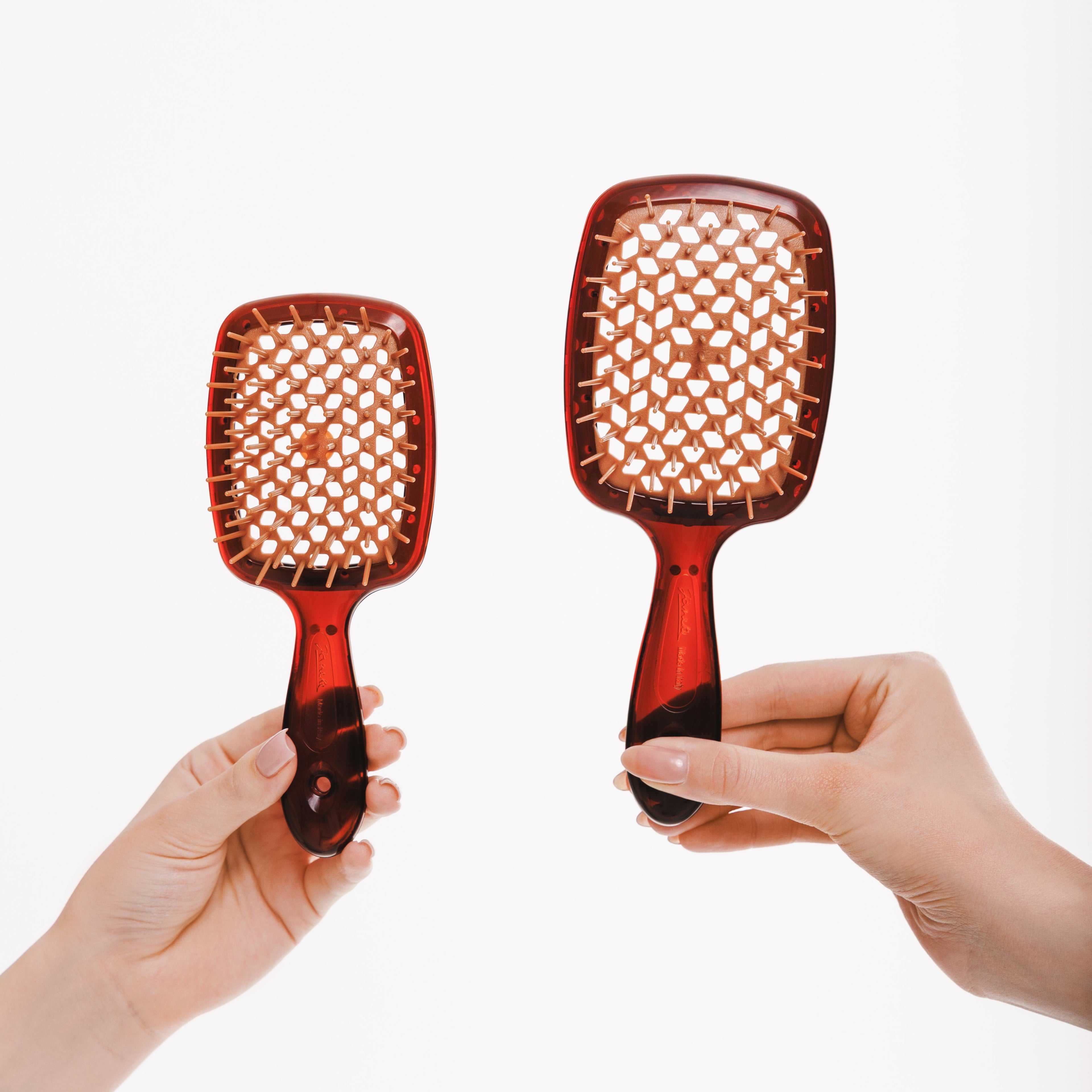 Superbrush detangles gently and effectively thanks to its soft bristles, while its patented honeycomb vent design ensures ultra-fast drying. Perfect for use in the shower or on damp hair, it helps apply cream and detangle in just a few strokes. It's especially useful for children's delicate hair and hair extensions: its soft bristles detangle with the utmost care! The brush's pneumatic base features a patented honeycomb vent design. This allows the hot air from the hairdryer to be evenly distributed, drying hair in just a few passes without causing stress.