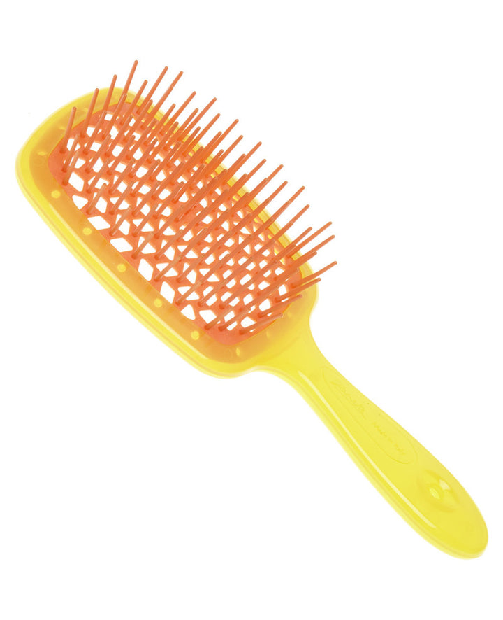 Superbrush gently and effectively detangles thanks to its soft tips and its particular patented beehive perforation allows for very quick drying. Also perfect in the shower or with damp hair, to apply the cream and detangle in just a few steps. Very useful for delicate baby hair and on extensions: its soft tips detangle in a super delicate way! The pneumatic base of the brush has a particular patented beehive perforation. The hot air of the hairdryer is thus distributed evenly to dry in a few steps without stressing the hair.