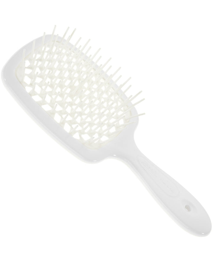 Superbrush gently and effectively detangles thanks to its soft tips and its particular patented beehive perforation allows for very quick drying. Also perfect in the shower or with damp hair, to apply the cream and detangle in just a few steps. Very useful for delicate baby hair and on extensions: its soft tips detangle in a super delicate way! The pneumatic base of the brush has a particular patented beehive perforation. The hot air of the hairdryer is thus distributed evenly to dry in a few steps without stressing the hair.
