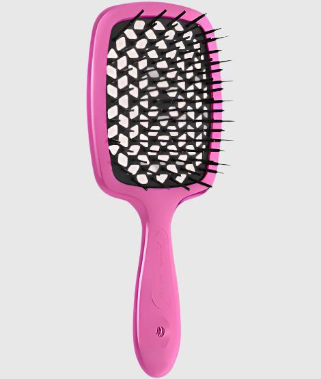 Superbrush gently and effectively detangles thanks to its soft tips and its particular patented beehive perforation allows for very quick drying. Also perfect in the shower or with damp hair, to apply the cream and detangle in just a few steps. Very useful for delicate baby hair and on extensions: its soft tips detangle in a super delicate way! The pneumatic base of the brush has a particular patented beehive perforation. The hot air of the hairdryer is thus distributed evenly to dry in a few steps without stressing the hair.
